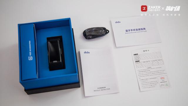 打开天地盖,咱们今天的主角dido P1S舒眠健康智能手环便成功登场。除了运动手环主机之外,还包含一根磁吸充电线、一张说明书、一张蓝牙手环连接指南、一张保修卡。以下是产品全家福。