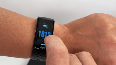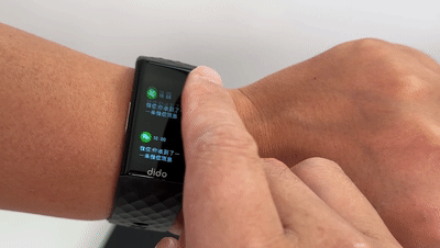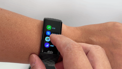 右侧的电源键单击,可以进入手环的应用界面,上下滑动可以单独打开各项功能。