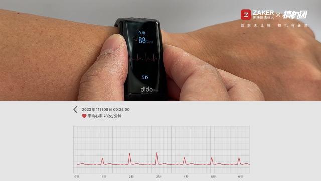 除了正常的心率监测之外,还新加了心电采集的功能,此项功能需要将大拇指和食指放在智能手环的左右两侧电极片上,等待一分钟就可以在APP上查看自己的心电数据了。